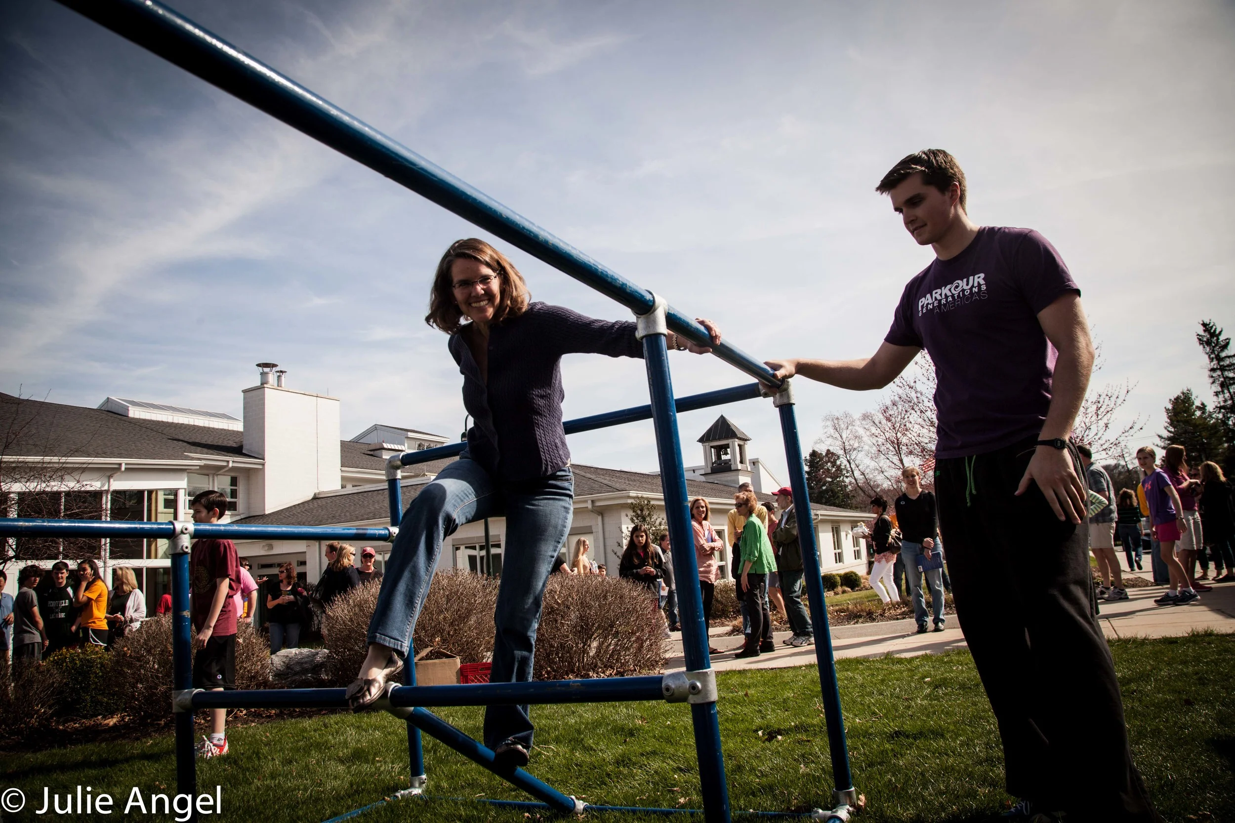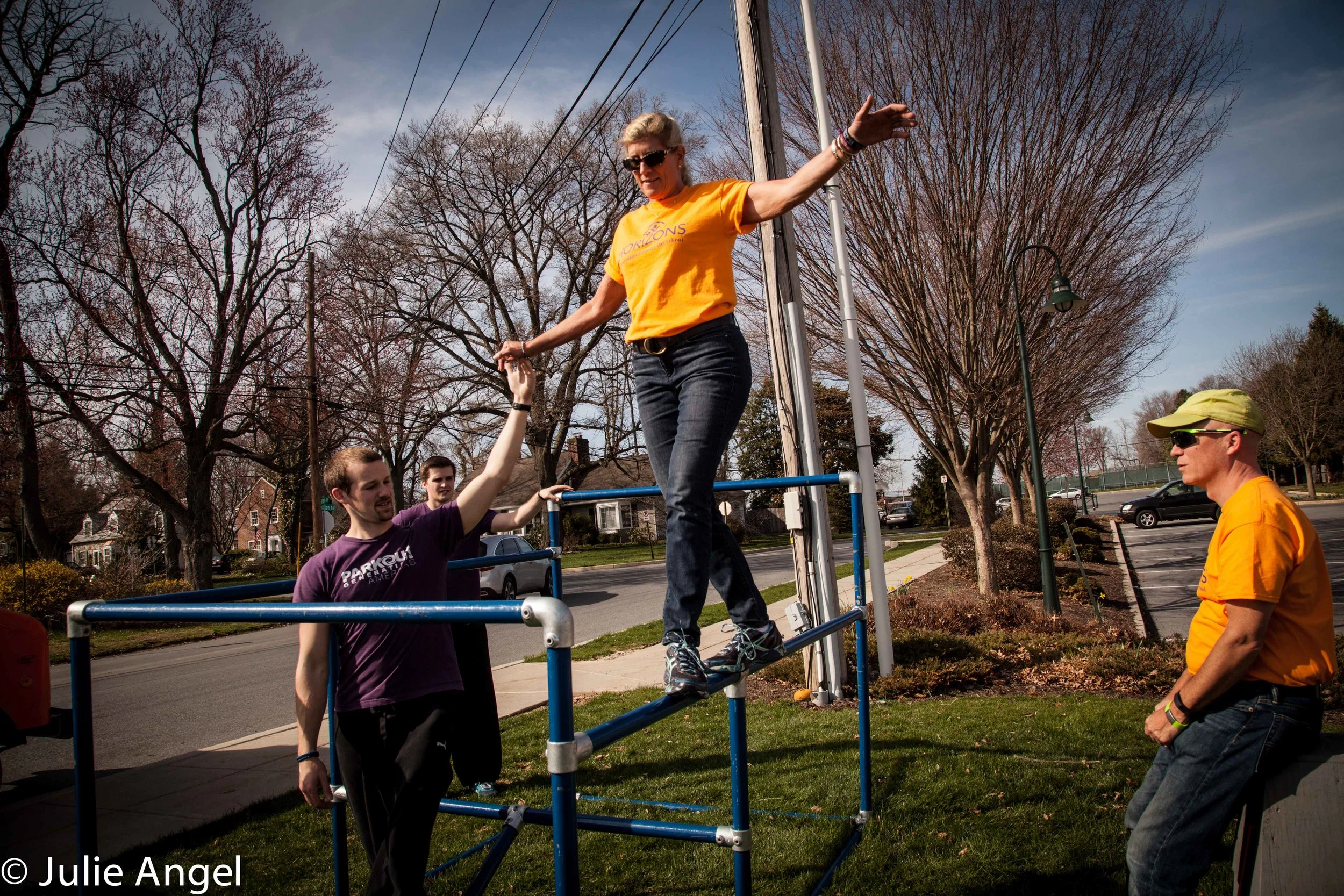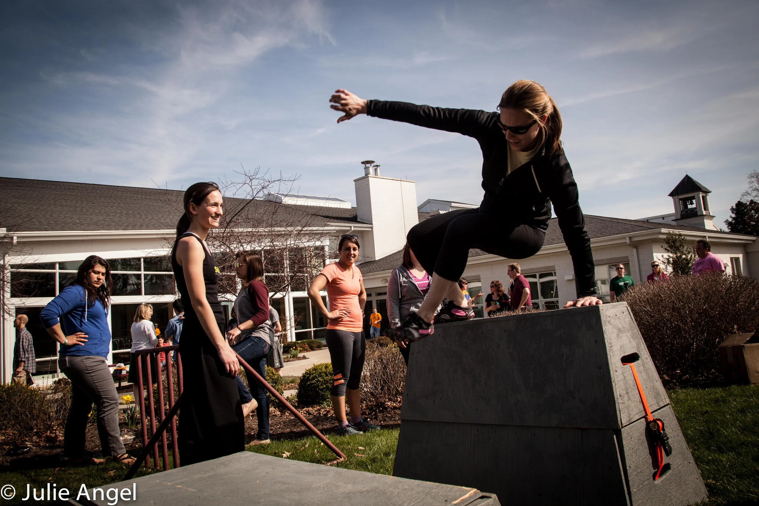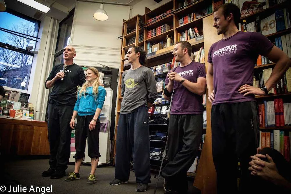 To promote the book’s launch and introduce its concepts, Chris is leading an ensemble of heroes around the United States and Europe. The Hero Tour features presentations by Dan Edwardes (Parkour Generations), Dr. Julie Angel (See & Do), Tara Wood (Wild Fitness), Liz Miele (standup comic), and others. Chris invited me to accompany him on the tour to give attendees an opportunity to experience parkour training for themselves.